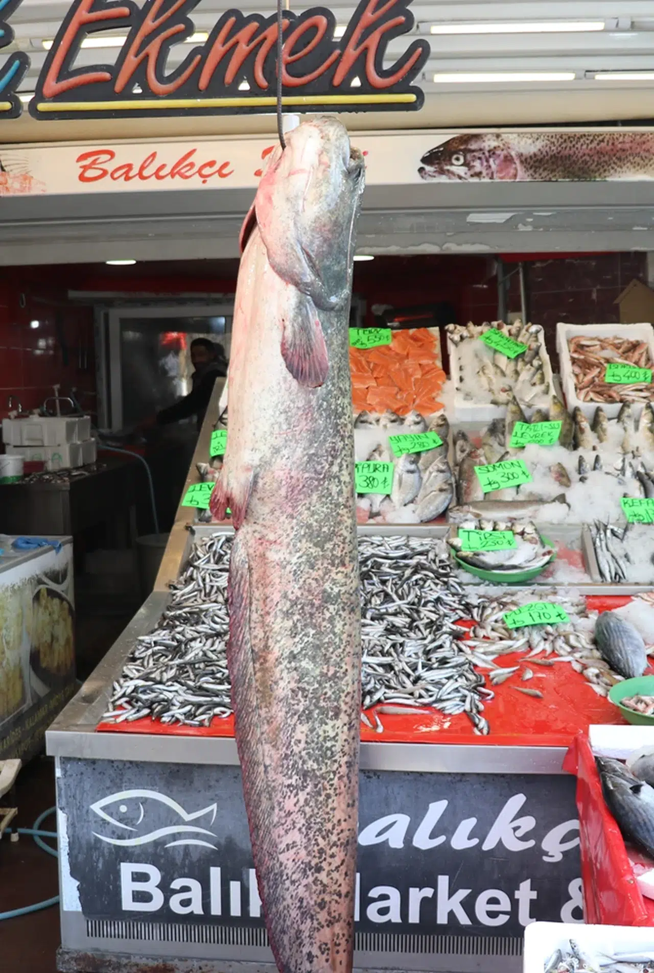Eftelioğlu, AA muhabirine, 2 metre boyundaki balığı yakalamanın oldukça zor olduğunu belirterek, "Ağırlığı 50 kilogram. Bir süre sergiledikten sonra kilogramını 450 liradan satacağız." dedi.