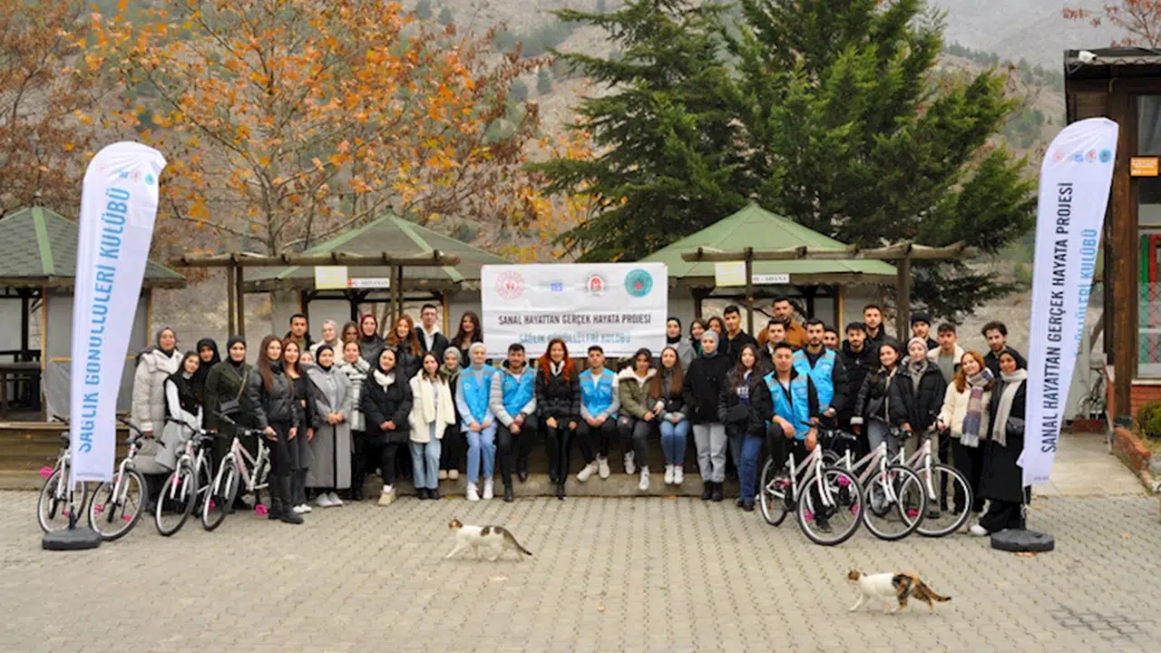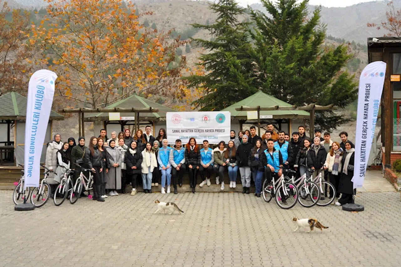 Etkinlik kapsamında, proje koordinatörü hemşirelik 4. sınıf öğrencisi Seyit Can Çetin öncülüğünde bisiklet turları düzenlendi.