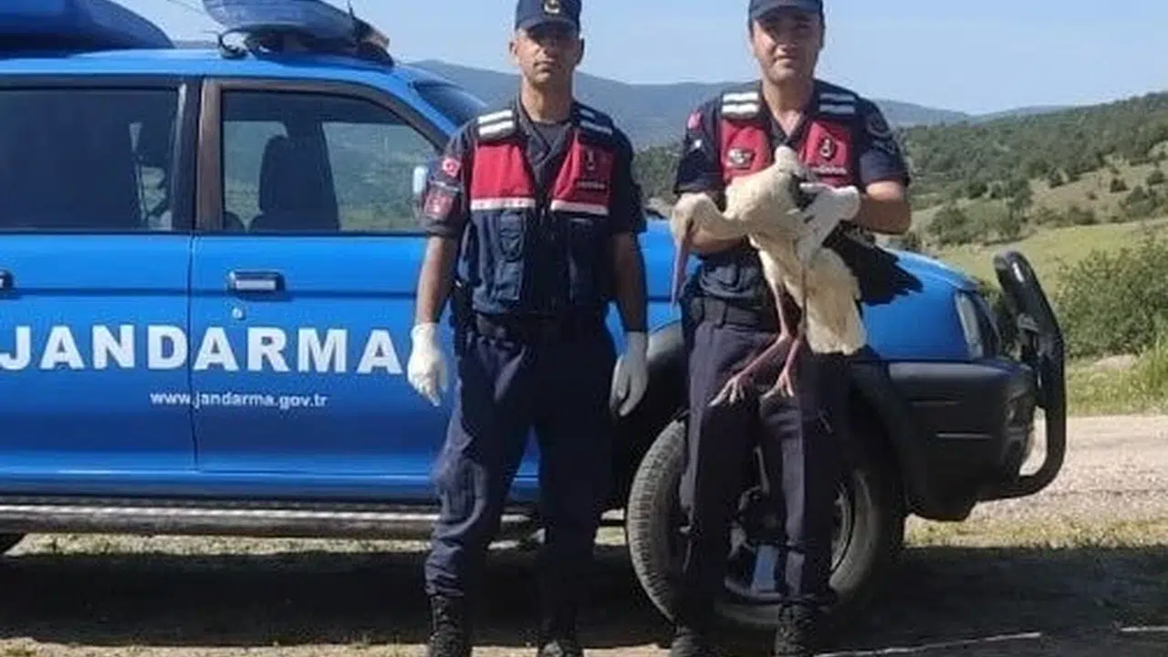 Amasya'da jandarmanın bulduğu yaralı leylek, tedavi edilecek