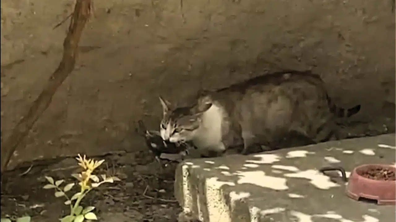 Ahmet Mert İpek, evde otururken dışarıdan civciv sesine benzeyen bir ses duyduğunu belirterek, "Baktığımda kedinin ağzında bir kuş vardı. Hemen dışarı çıkıp kedinin ağzından aldım, eve getirdim." dedi.