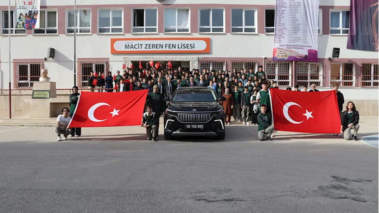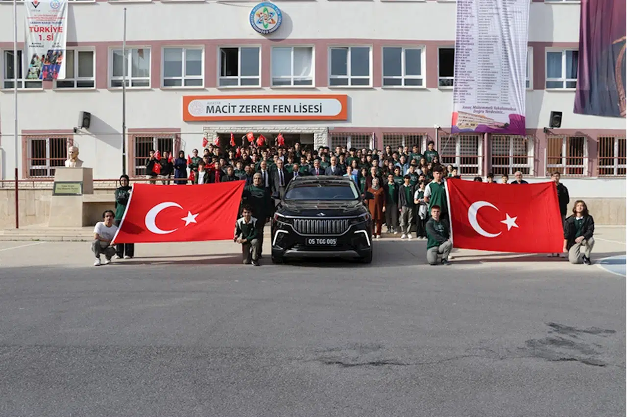 Yerli ve milli otomobil Togg da koreografi de yer aldı. Öğrenciler, okulun bahçesindeki Togg'u ilgiyle inceledi.
