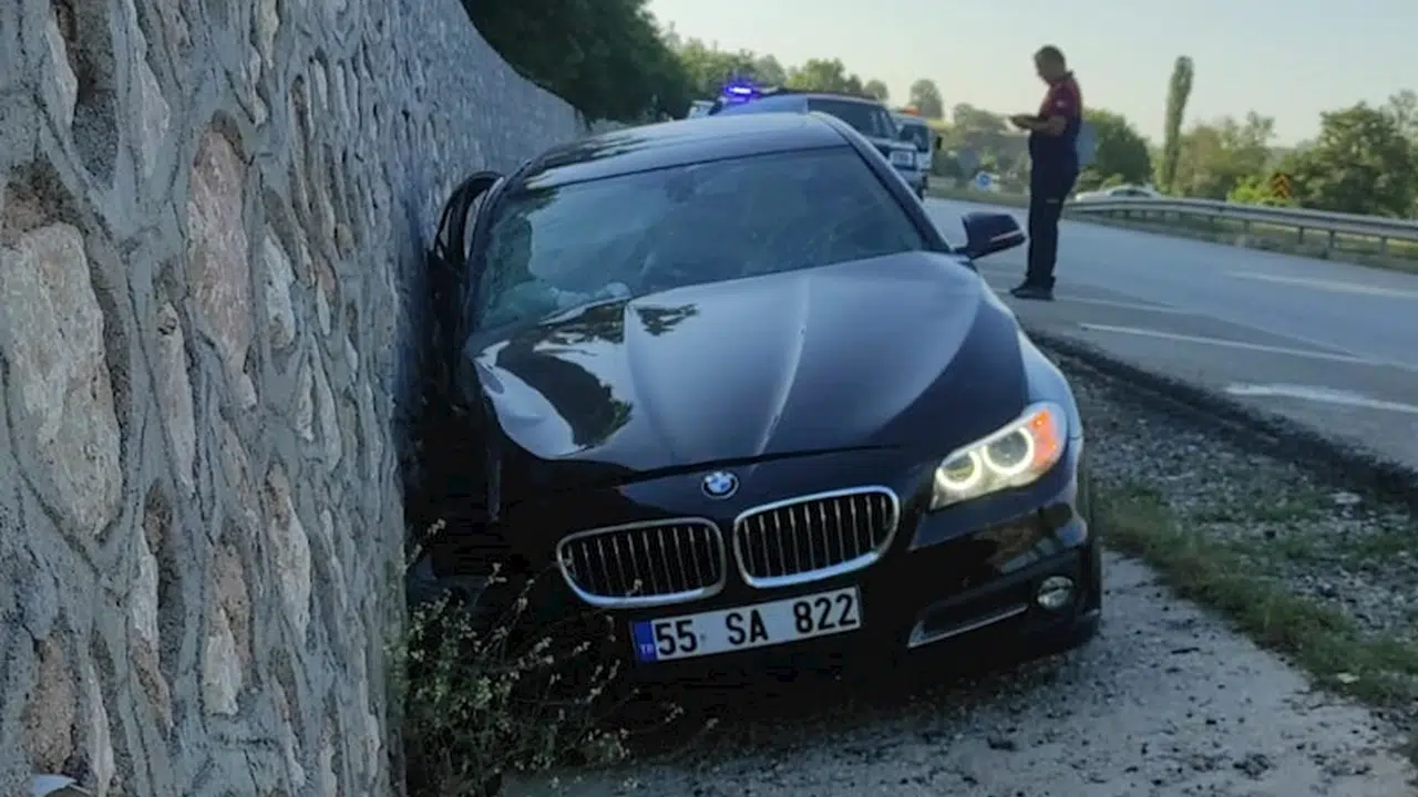 Samsun'dan İstanbul'a giden Adem Ş. (48) yönetimindeki 55 SA 822 plakalı otomobil, Bacakoğlu köyü mevkisinde yoldan çıkarak istinat duvarına çarptı.
