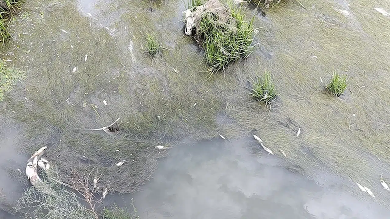 Irmağın Ataşehir mevkisinden geçen bölümünde suyun renginin değişmesinin ardından yüzeye çok sayıda balık çıktı.