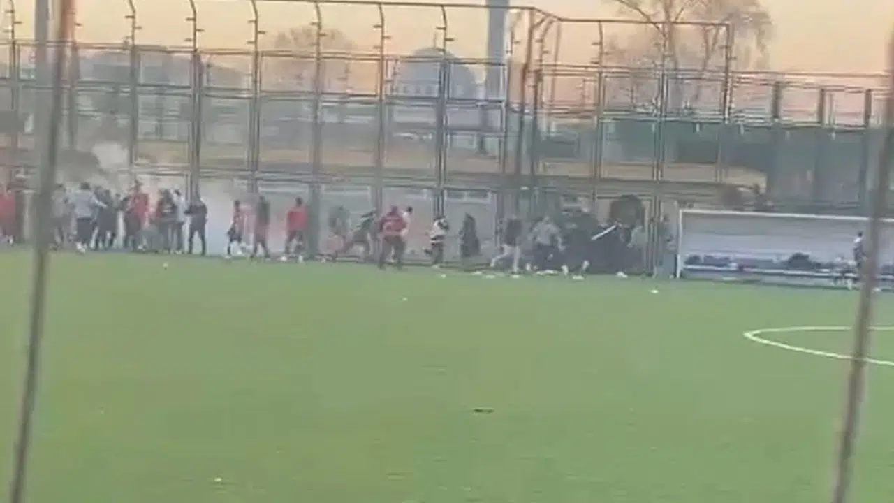Yavuz YILMAZ/ BURSA, (DHA)- BURSA’da, Zaferspor ile İnegöl Orhaniyespor arasında oynanan amatör küme karşılaşmasından sonra olaylar çıktı. Sahaya giren taraftarlar İnegöl Orhaniyesporlu futbolculara saldırırken, polis biber gazı kullanarak müdahale etti. Konuk 2 futbolcunun yaralandığı o anlar cep telefonu kamerasına yansıdı.