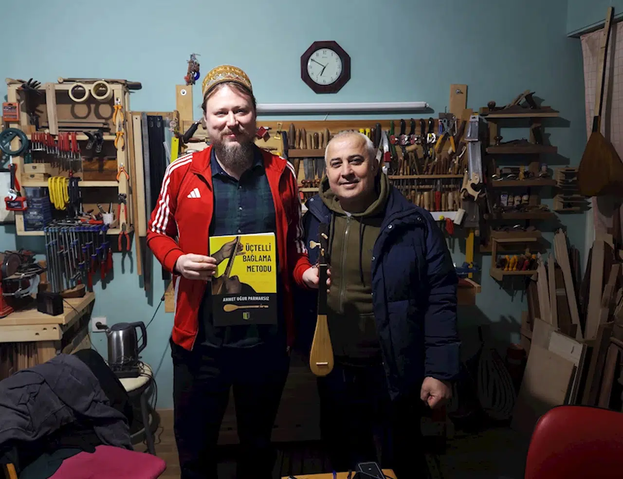 Ahmet Uğur Parmaksız, Gabriel Akhmad Marin’i atölyesinde konuk ettiğini belirterek, “Kendisi çok önemli bir müzisyen. Ana enstrümanı gitar ama Asya ve Orta Doğu’daki bütün çalgıları hemen hemen biliyor ve bunları çalabiliyor. Bunlarla ilgili önemli bir teknik bilgiye sahip. Türkiye’deki enstrümanları tanıyor, müzisyenlerimizden haberi var. Neşet Ertaş’ı da Erdal Erzincan’ı da biliyor. Musa Eroğlu’nu, Arif Sağ’ı tanıyor. Bağlamayla ilgili inanılmaz bir bilgiye sahip. Daha önce biz sosyal medya üzerinden yazıştık. Bana üç telli sazla ilgili bazı teknik bilgileri gösterip, gösteremeyeceğimi sormuştu. Ben de bildiğim tüm teknikleri onunla paylaşabileceğimi söyleyerek, onu atölyeme davet ettim. Onunla üç telli sazı çalma teknikleriyle ilgili uygulamalı dersler yaptık. Çabuk kavranamayacak bilgileri ve teknikleri hemen kavradı. İnanılmaz bir becerisi var ve bunu hemen görebiliyorsunuz. Müzik konusunda çok donanımlı. Müzik konusunda inanılmaz bir bilgiye sahip. Eline aldığı tüm enstrümanları çalabiliyor. Kopuz ve bağlamam vardı, onları alıp akort edip, çaldı. Onu atölyemde ağırlamak benim için çok büyük bir onurdu. Kitabımı imzalayarak ona hediye ettim. Ayrıca yapmış olduğum üç telli sazlardan birini aldı. Bunu öğreneceğini ve ileride çok iyi çalacağını söyledi. Umarım müzik yolculuğunda önüne hep güzel şeyler çıkar” dedi. (DHA)