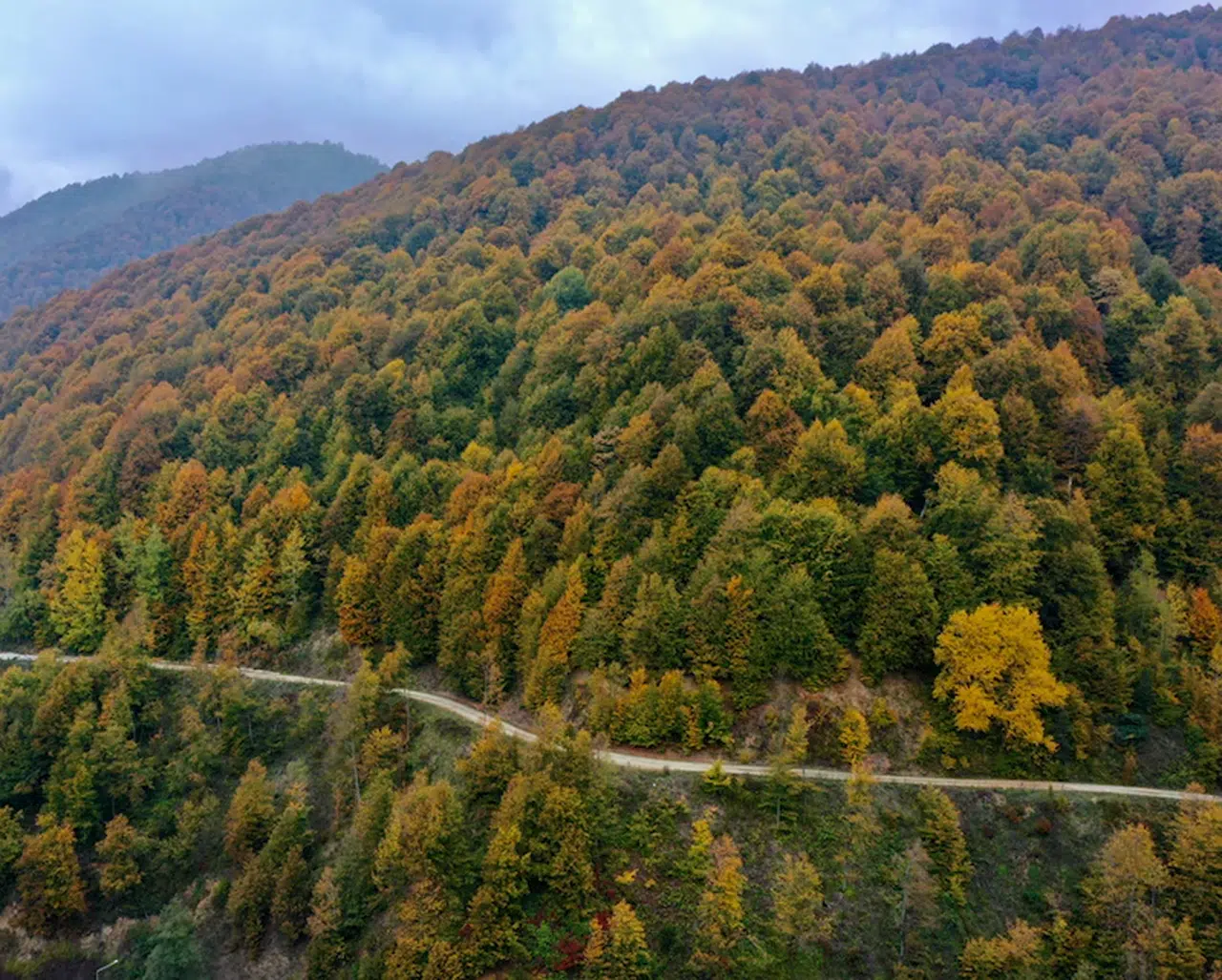 Bolu Dağı'nda sonbaharın renkleri, dronla görüntülendi.