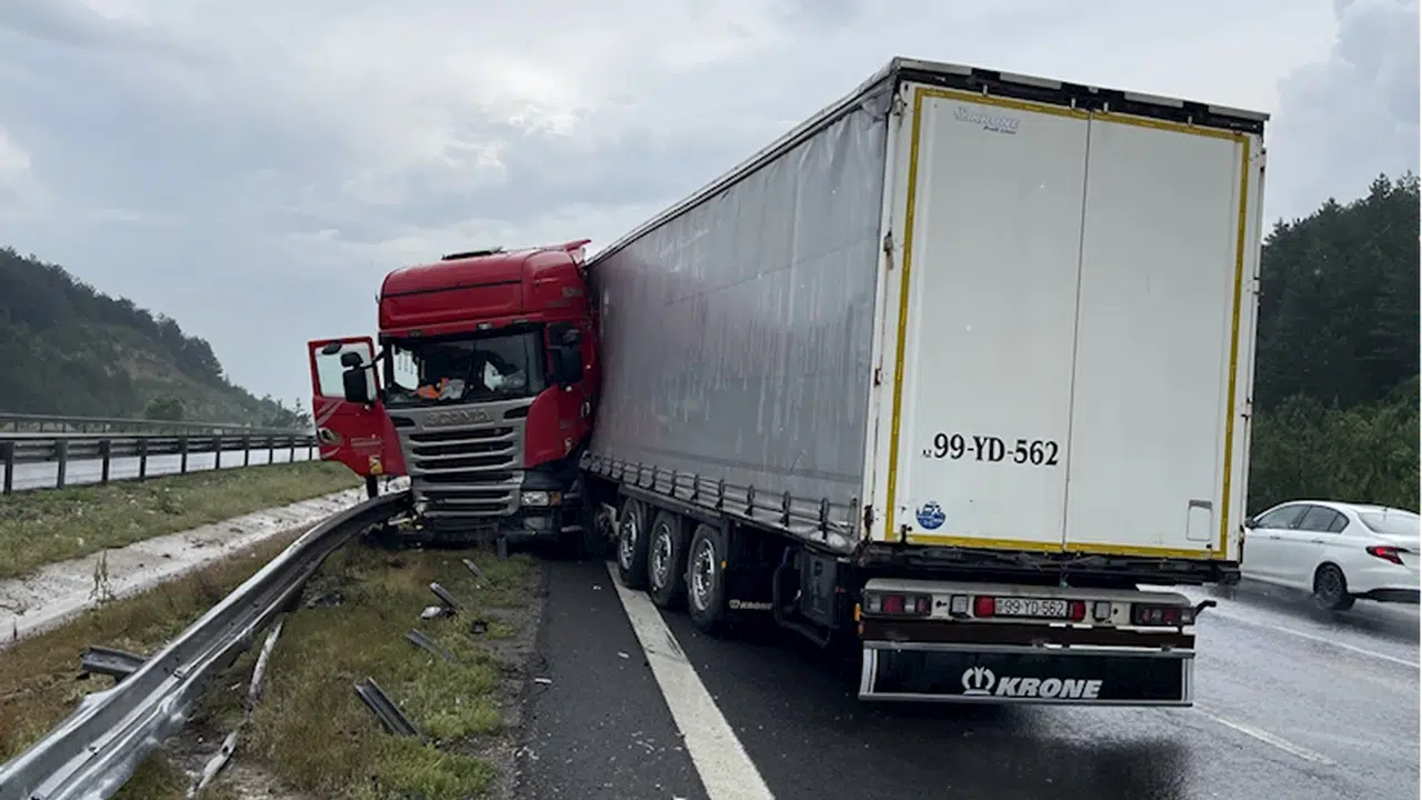 Anadolu Otoyolu'nun Bolu kesiminde bariyere çarpan tırın sürücüsü yaralandı