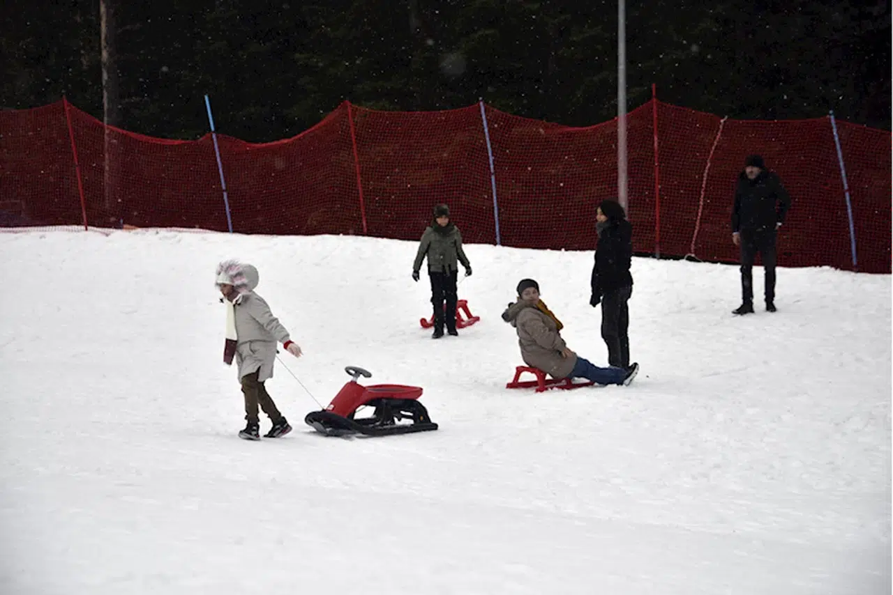Doğal güzellikler arasında yürüyüş imkanı bulan ziyaretçiler, kayak ve snowboard yapıp kızakla kayarak keyifli vakit geçiriyor.