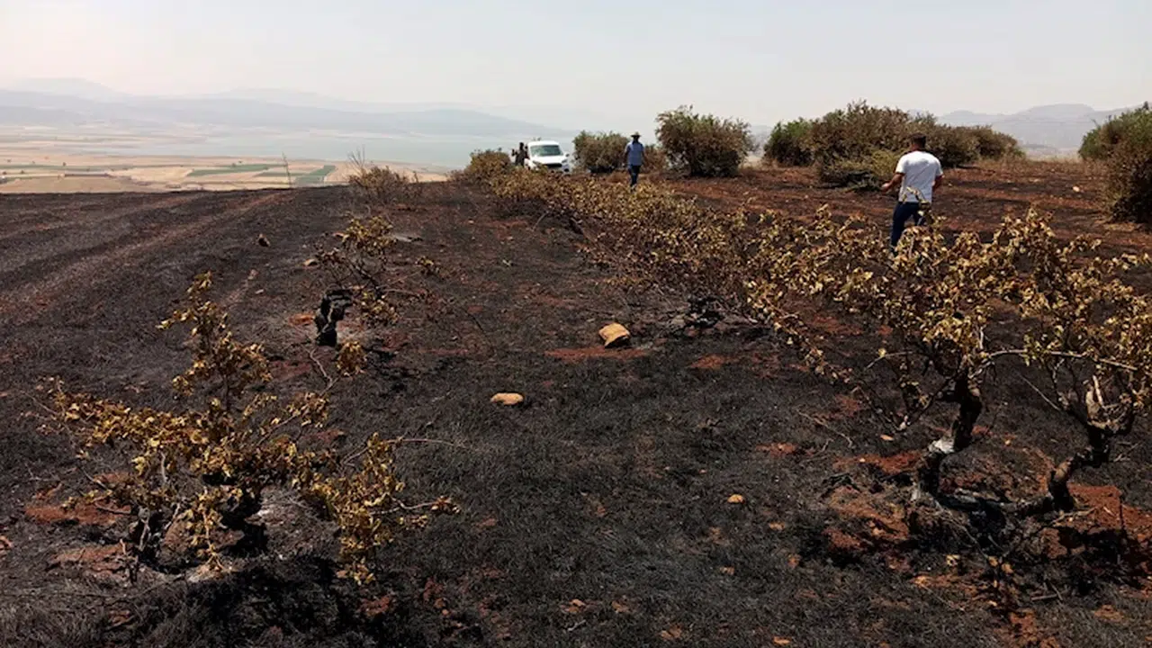Kadir ÇELİK/ İSLAHİYE (Gaziantep), (DHA)- GAZİANTEP’in İslahiye İlçesinde, anız yangınında 10 dönüm anız yanarken, 200 zeytin ağacı ve 400 üzüm bağı zarar gördü.