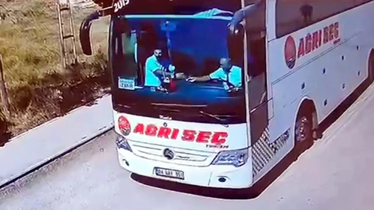 Ağrı'nın Doğubayazıt ilçesinden İzmir'e gitmek üzere yola çıkan ve sürücüsünün kimliği henüz belirlenemeyen Öz Ağrı Seç Turizm firmasına ait 04 AAV 951 plakalı yolcu otobüsü, bugün sabaha karşı E-90 kara yolunun Olukpınar köyü mevkinde sürücüsünün kontrolünden çıktı. Otobüs, önce bariyerlere, daha sonra üst geçidin beton ayaklarına çarptı. Çarpmanın etkisiyle otobüs hurda yığınına döndü. 9 kişinin hayatını kaybettiği 27 kişinin de yaralandığı kazaya karışan yolcu otobüsünün Ağrı'nın Doğubayazıt ilçe otogarından hareket ettiği görüntüler ortaya çıktı. Otogardan yolcu alan otobüsün saat 09.34'teki çıkış anı güvenlik kameralarına yansıdı. (DHA)