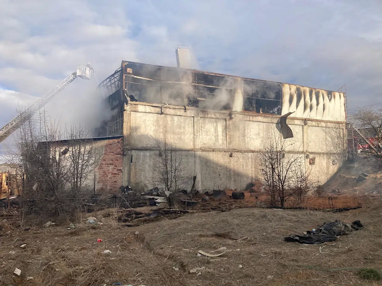 Zarara yol açan yangınla ilgili soğutma çalışmaları sürüyor. (DHA)