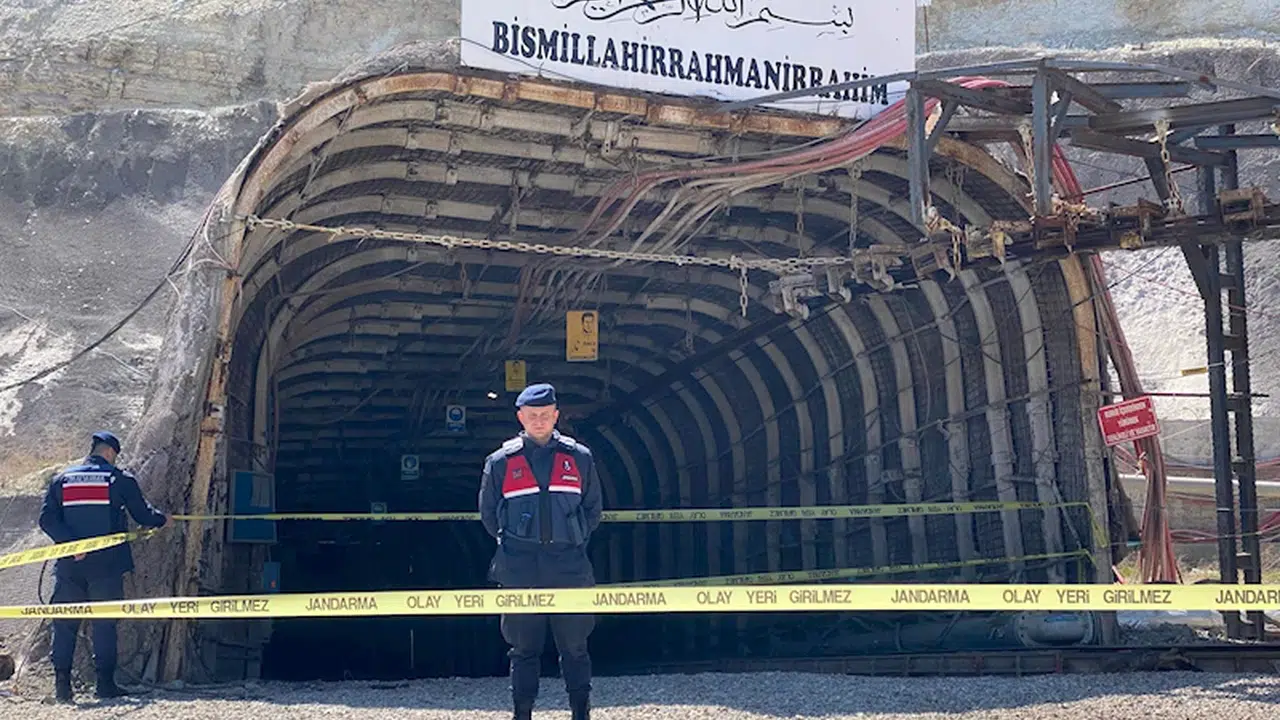 Jandarma ekipleri, faaliyeti geçici olarak durdurulan maden sahasının önünde nöbet tutarken, olayla ilgili soruşturma sürüyor. (DHA)