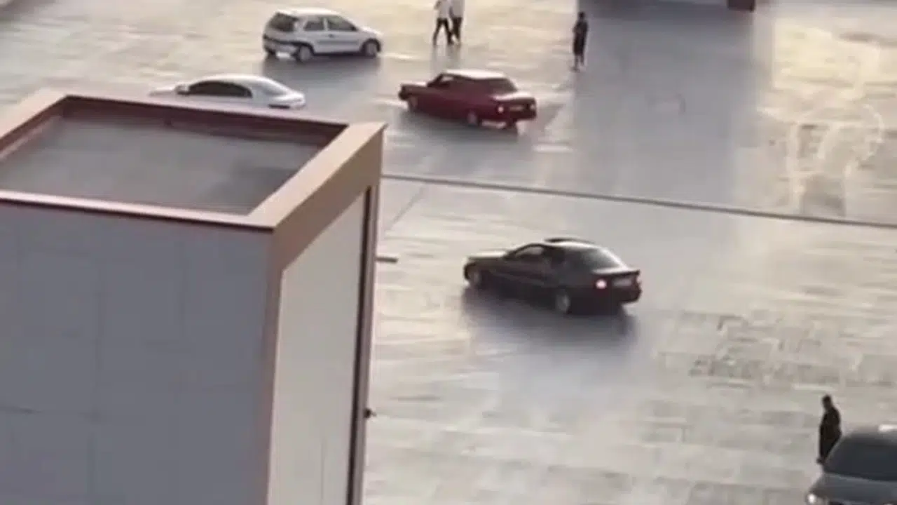 Olay, akşam saatlerinde Ankara'nın Sincan ilçesinde meydana geldi. Sincan Eğitim ve Araştırma Hastanesi otoparkının çatısında bir otomobil sürücüsünün drift yaptığı görüldü. Bu sırada otopark çatısında 6 otomobil ve bir motosikletlinin olduğu görüldü. Yaşananlar çevredeki bir kişi tarafından cep telefonu kamerasıyla görüntülendi. (DHA)
