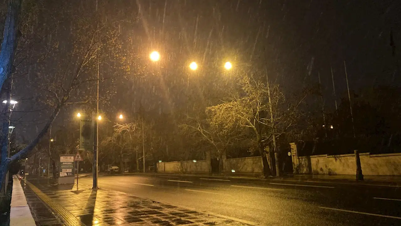 Ankara’da, gece saatlerinde düşen sıcaklıklar ile beraber kar yağışı etkili oldu. Yağış, kent genelinde gece boyunca devam ederken, yüksek kesimleri ise yer yer beyaza bürüdü. Meteoroloji Genel Müdürlüğü tahminlerine göre kar yağışının sabah saatlerine kadar sürmesi bekleniyor. (DHA)