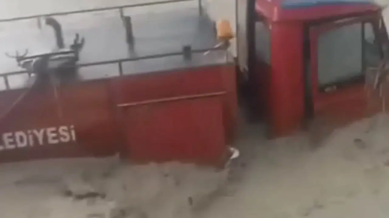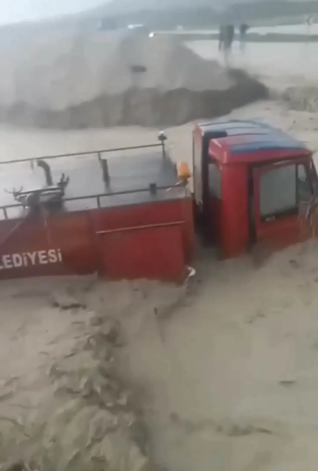 Muammer DAŞDELEN/ AYAŞ (Ankara), (DHA)- ANKARA'nın Ayaş ilçesinde sağanak sele neden oldu; evleri su bastı, itfaiye aracı sele kapıldı.