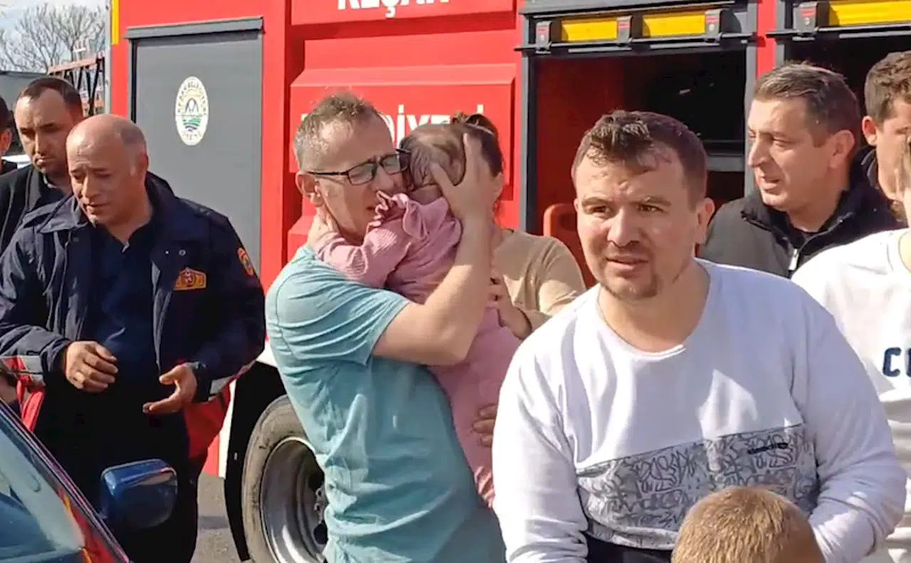Olay, öğle saatlerinde İspat Cami Mahallesi Akıncı Sokak üzerinde meydana geldi. İddiaya göre, ailesinin otomobilde bıraktığı ismi açıklanmayan 2 yaşındaki kız çocuğu, anahtarı eline alarak oynadığı sırada kapıları kilitledi. Bir süre sonra otomobilin başına dönen aile kapıların açılmadığını fark ederek, çocuklarına kapıyı açtırmaya çalıştı. Ailenin başarılı olamaması üzerine ihbarla olay yerine polis ve itfaiye ekipleri sevk edildi. Çevrede toplananlar da uzun uğraşlara rağmen kapıları açmayı başaramadı. Yaklaşık 1,5 saat otomobilde kilitli kalan çocuk, Keşan Belediyesi Kaza- Kırım ekibinin otomobilin camını kırmasıyla kurtarıldı. Kurtarılan çocuk, anne ve babasına sarılarak ağladı. O anlar ise çevredekiler tarafından cep telefonu kamerasıyla kaydedildi. (DHA)