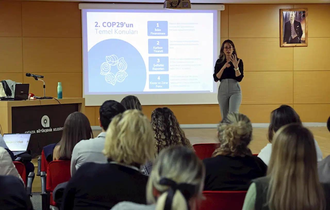 ANTALYA, (DHA) - ANTALYA Büyükşehir Belediyesi, Azerbaycan’ın Bakü şehrinde düzenlenen 29'uncu Taraflar Konferansı (COP29) toplantısına katılarak, iklim değişikliğiyle mücadeledeki çalışmalarını uluslararası platformda tanıttı. Bu toplantıda elde edilen deneyimler Antalya Büyükşehir Belediyesi bünyesindeki ilgili birimlere yönelik bilgilendirme toplantısında anlatıldı.