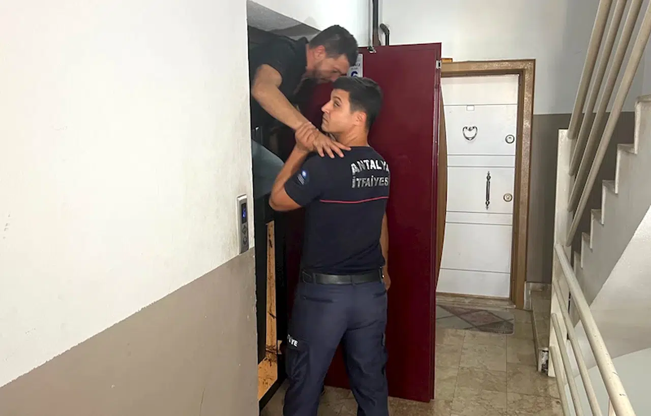 Adem AKALAN/ANTALYA, (DHA)- ANTALYA'da şüpheli ölüm olayına gittikleri binada bindikleri asansörde 6’ncı katta mahsur kalan polisler, 45 dakikalık çalışmasıyla çıkarıldı.