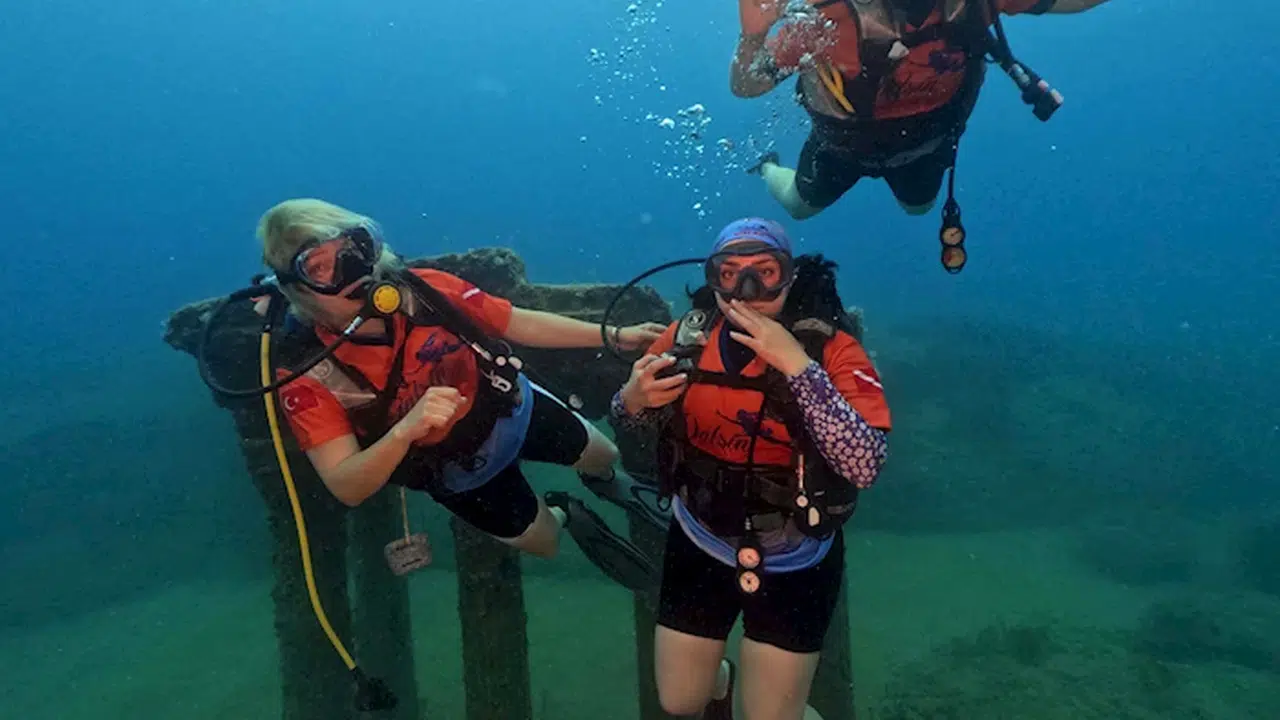 Mithat ABAKAN/MANAVGAT (Antalya), (DHA)- ANTALYA'nın Manavgat ilçesinde 'Dalsın Kızlar' projesi kapsamında daha önce hiç dalış yapmamış çeşitli yaş gruplarında 98 kadın dalış eğitimi alarak, ilk kez su altına dalış yaptı. Projeye Adıyaman'dan katılan depremzede Gülistan Pulat, deprem nedeniyle kapalı alan korkusu olduğunu belirterek, "İlk başta çok korktum ama eğitmenimin yardımıyla bu korkuyu attım. Aşağısı çok güzeldi" dedi.