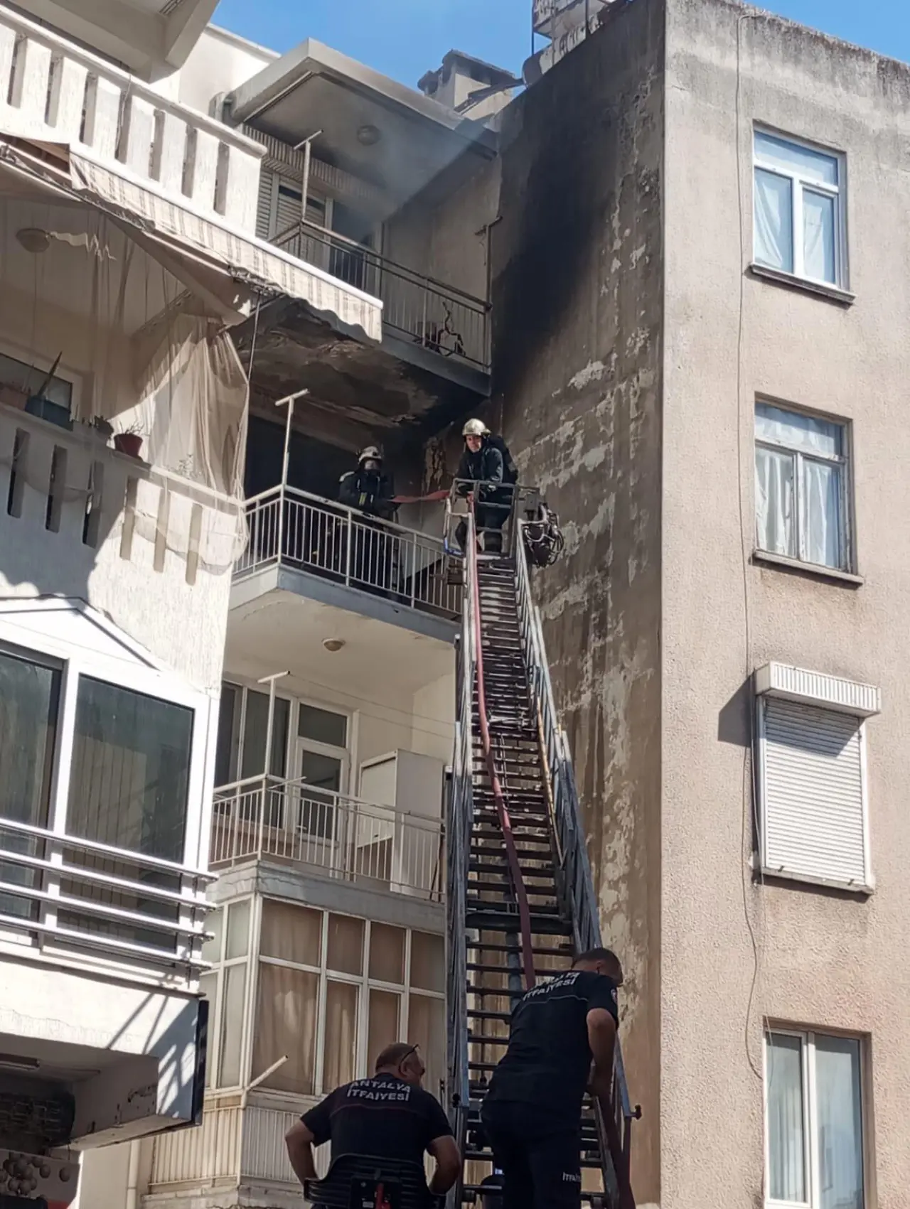 Yangın, saat 14.30 sıralarında Muratpaşa ilçesi Kışla Mahallesi 54 sokak üzerinde yer alan 5 katlı apartmanın 4'üncü katında meydana geldi. 2 oğluyla evde kiracı olarak oturan Meryem Karagöz, oğlu ve 2 arkadaşı evde oyun oynadığı esnada yatak odasından alev yükseldiğini gördü. Karagöz çocukları dışarı gönderirken, alevlere müdahale etmek istedi. Yangını gören mahallelinin ihbarıyla adrese ekipler sevk edildi. Kısa sürede gelen itfaiye ekibi alevlere müdahale etmeye başladı. Sağlık ekibi de saçı ve ellerinde yanık bulunan Meryem Karagöz'ü, lk müdahalenin ardından tedbir amaçlı hastaneye götürdü. İtfaiye ekibi yangını 20 dakikada kontrol altına aldı. Ekipler, söndürme çalışmalarının ardından yaklaşık 20 dakika da soğutma çalışması gerçekleştirdi.
