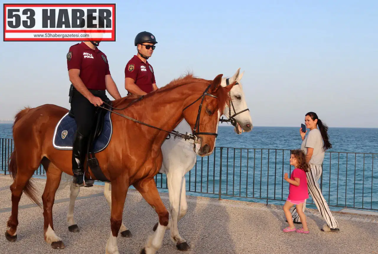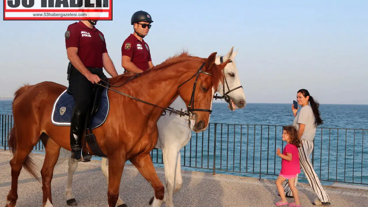 Antalya'da turizm sezonunun başlamasıyla birlikte sahillerde güvenliği sağlamak amacıyla atlı polis timleri devriye görevine başladı. Özellikle Konyaaltı Sahili'nde görev yapıp, asayiş olaylarına müdahale eden atlı polisler, vatandaşların yoğun ilgisiyle karşılaşıyor. Sahilde devriye gezen atlar arasındaki anne- kız 'Babilon' ve 'Filika' isimli atlar, sahilde dikkatleri üzerlerine çekiyor. Atlı Polis Birliği'ndeki 12 at her gün yaklaşık 1 saat eğitimden geçerken, profesyonel binicileri eşliğinde görevlere hazırlanıyor. Kalabalık etkinliklerde, konserlerde ve bayram günlerinde aktif rol alan atlı polisler, atların güçlü sezgisi sayesinde olaylara daha hızlı müdahale edebiliyor. Antalya emniyetinin özel timi, hem yerli hem yabancı turistlere güvenli ve huzurlu bir ortam sunmayı amaçlıyor.