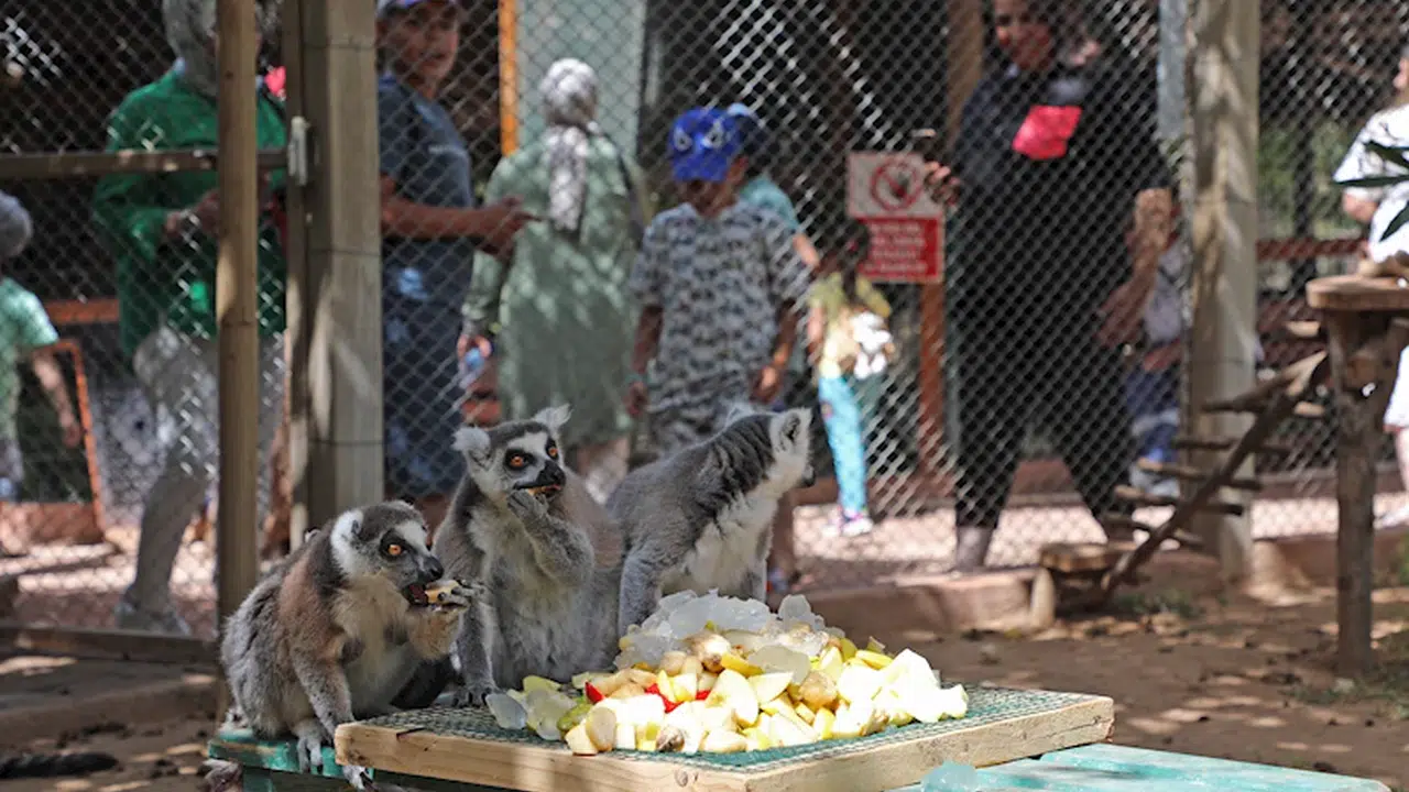 ANTALYA, (DHA)- HAVA sıcaklığının 44 dereceye ulaştığı Antalya'da, belediyenin doğal yaşam parkındaki hayvanlar buzlu meyve kokteylleri ve fıskiyeler ile serinletiliyor.