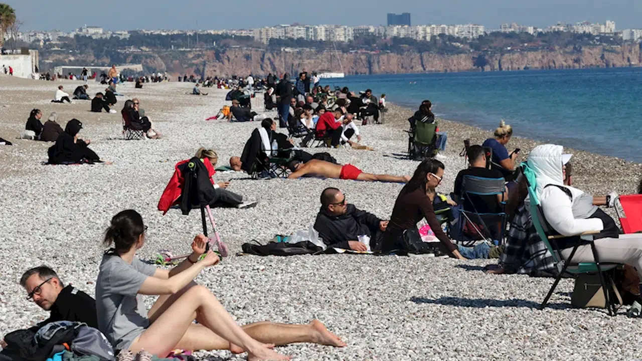 Türkiye'nin birçok bölgesinde soğuk hava etkili olurken, Antalya'da şubat ayının ortasında güneşli günü fırsat bilenler, Konyaaltı Sahili'ne akın etti. Meteoroloji Genel Müdürlüğü verilerine göre; Antalya'da hissedilen en yüksek sıcaklık 18, en düşük 13 derece ölçüldü. Nem oranı ise gün ortasında yüzde 48 seviyelerinde seyretti. Şubat ayının ortasında yaşanan sıcak hava, sahilde hareketliliği artırdı. Bazı aileler piknik yaparak vakit geçirirken, çocuklar bisiklet sürüp oyunlar oynayarak eğlendi. Bazıları ise köpekleriyle sahilde yürüyüş yaparak güneşli havanın keyfini çıkardı. Bazı vatandaşlar ve turistler de denize girdi. Sahil bandında bisiklet süren çocuklar ve deniz kenarında vakit geçirenler Konyaaltı Sahili'nde yoğunluk oluşturdu. (DHA)