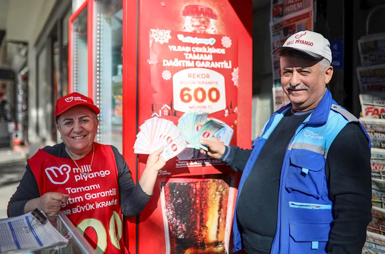 Milli Piyango Yılbaşı Özel Çekilişi'nde 600 milyon liralık büyük ikramiye, '1052448' numaralı çeyrek bilete isabet etti. Büyük ikramiye, Antalya'nın Muratpaşa ilçesi, Bursa'nın Osmangazi ilçesi ve İzmir'in Bergama ilçesindeki bayilerden satılan fiziki biletlere çıktı. Çeyrek biletlerin sahipleri, dağıtım garantisi uygulaması kapsamında ikramiyenin eşit olarak 3’e bölünmesiyle 200'er milyon lira kazandı.