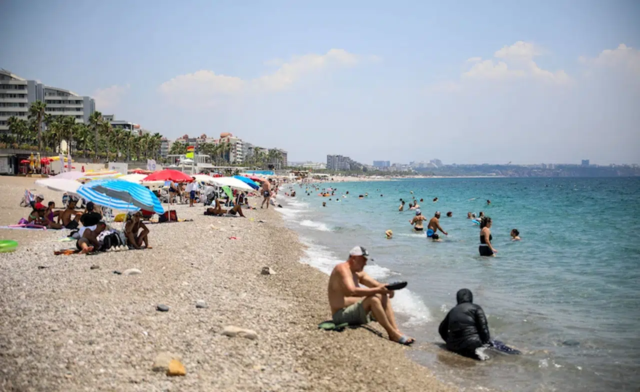 Yurt genelinde hava sıcaklıkları mevsim normalleri üzerinde seyrederken, Antalya'da da son günlerde hava sıcaklıkları 40 derecenin üzerinde ölçülüyor. Mevsim normallerinin yaklaşık 10 derece üzerinde seyrettiği kent merkezinde dün hava sıcaklığı 41,6 derece ölçülürken, bugün ise 42 dereceye ulaştı. Sıcak havayı fırsat bilen tatilciler ise soluğu sahilde aldı. Sahile gelen tatilcilerin bir bölümü serinlemek için denize girerken, kimileri ise güneşlenmeyi tercih etti. Yolda yürüyen bir ailenin ise güneşten korunmak için plaj şemsiyesi taşıdığı görüldü.