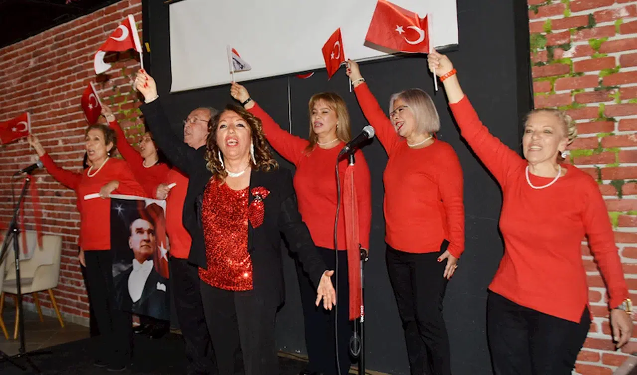 Diksiyon kursiyerlerinden oluşan mini koronun 1'i erkek, 6'sı kadın üyeleri kırmızı ve siyah kıyafetleriyle sahneye çıktı. Kadınlar program öncesi, içerisinde 'sevgi' sözcüklerinin yer aldığı birbirinden güzel duygu yüklü şiirleri seslendirdi, ardından da orkestra eşliğinde neşeli şarkılar yorumlandı. Keyifli dakikalar yaşayan izleyici, birçok şarkıya hep bir ağızdan eşlik edince de coşkulu dakikalar yaşandı. Program, Türk bayrakları dalgalandırılarak okunan 'Onuncu Yıl Marşı' ile son buldu.