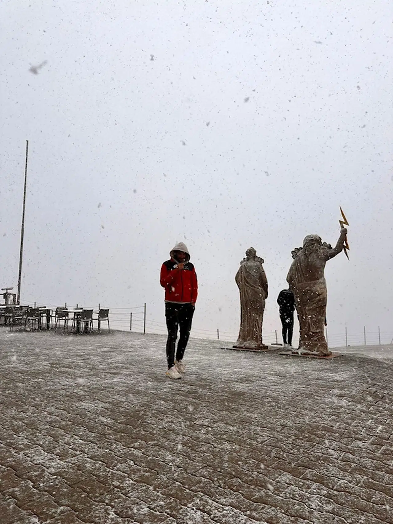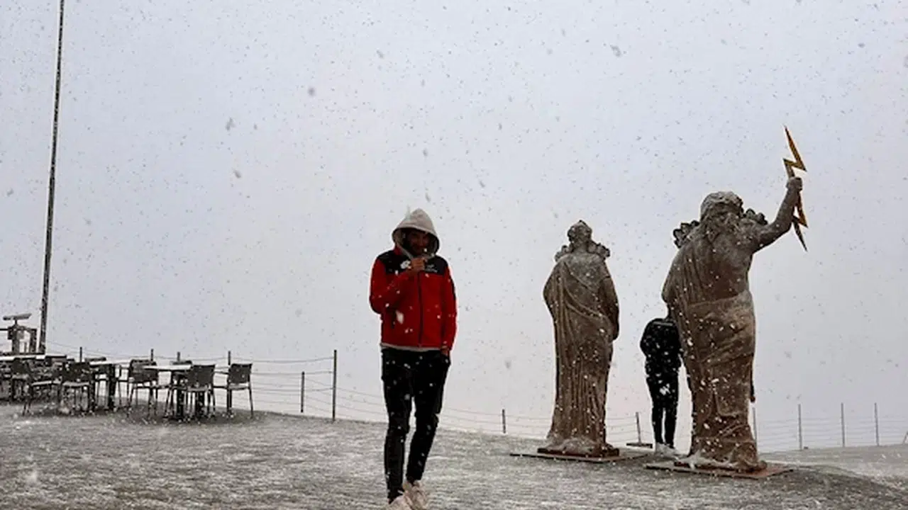Kemer’de bugün hava sıcaklığı 18 derece ölçülürken, 2 bin 365 metre yükseklikteki Tahtalı Dağı'nın zirvesinde ise sıcaklık 7 dereceye kadar düştü. Hava sıcaklığının hızlı düşmesiyle birlikte Tahtalı Dağı'nın zirvesine Antalya'nın ilk karı düştü. Her yıl yüz binlerce kişinin ziyaret ettiği Tahtalı Dağı'nın zirvesinde saat 10.30 sıralarında başlayan kar yağışı, yerini karla karışık yağmura bıraktı. Yer yer kar yağışının olduğu zirvede zemin beyaza büründü. (DHA)