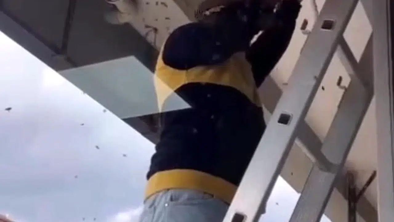 Apartmanda yuva yapan arılar, kutuyla alırken üzerine düştü; o anlar kamerada