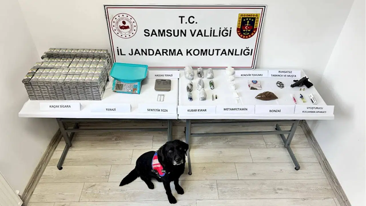 Ekipler, düzenledikleri operasyonda Çakallı mevkisinde durdurdukları araçta narkotik dedektör köpeği "Tahra" desteğiyle arama yaptı. Araca saklanan 333 gram kubar esrar, 302 gram sentetik uyuşturucu, 2 hassas terazi, 2 uyuşturucu kullanma aparatı, ruhsatsız tabanca, 8 sentetik ecza hapı ve 426 paket kaçak sigara ele geçirildi.