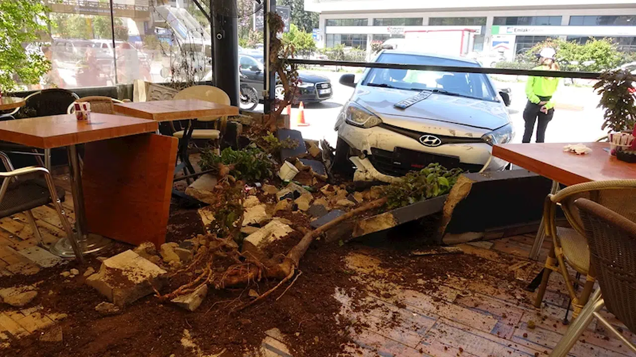 Aracın sıkıştırdığı otomobil pastane duvarına çarparak durabildi