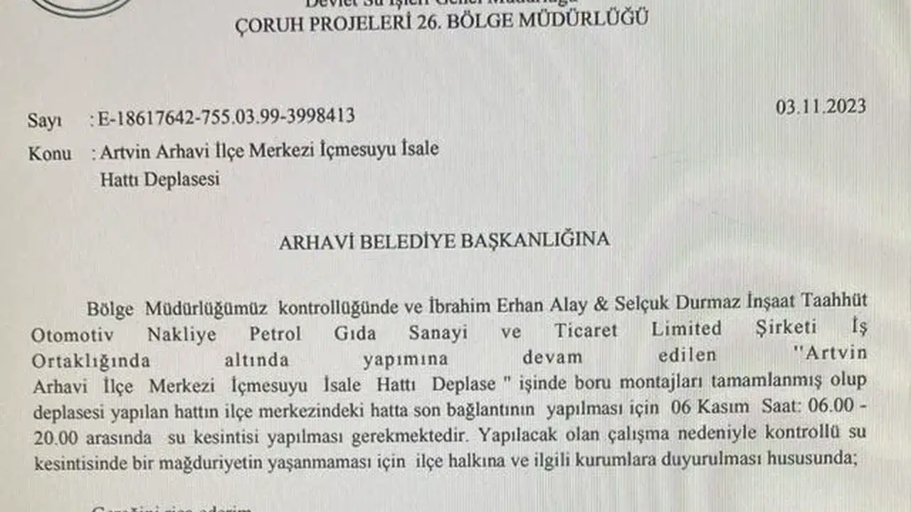 Bu kesinti, çalışmaların sorunsuz bir şekilde ilerleyebilmesi ve mağduriyet yaşanmaması için planlanmıştır. Arhavi Belediyesi, tüm halkına bu önemli bilgiyi duyurarak vatandaşları su kesintisi süresince gerekli önlemleri almaya davet etmektedir.
