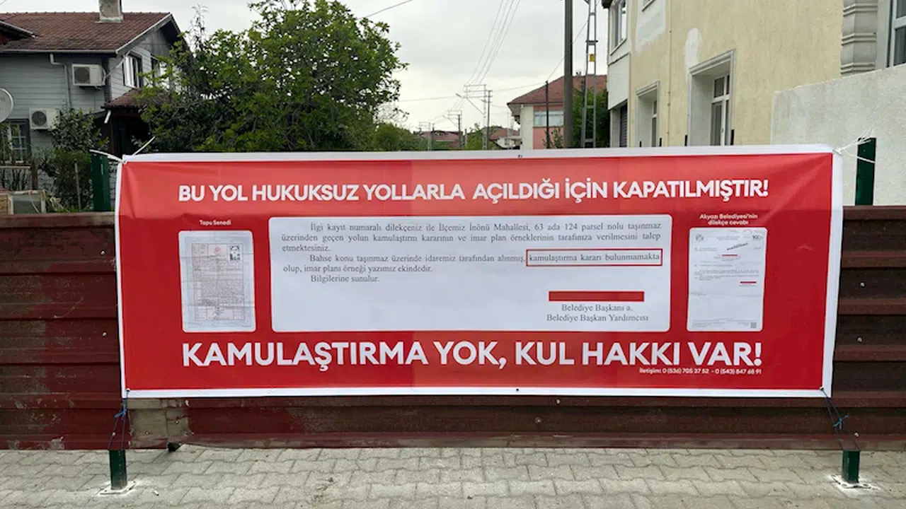 Akyazı ilçesi İnönü Mahallesi 7024 No’lu Sokak’taki 63 ada 124 parselin içinden geçen yol, 25 yıl önce belediye tarafından kamulaştırma yapılmadan açıldığı iddiasıyla arsa sahipleri tarafından kapatıldı. Arsa sahibi Asım Erol'un torunu Recep Erol, yıllardır süren bu mağduriyetin çözülmesi için Akyazı Belediyesi ile iletişime geçtiklerini ancak olumlu bir yanıt alamadıklarını ifade etti. Belediye Başkanı Bilal Soykan ile görüştüklerini belirten Erol, Başkan Soykan’ın konunun hukuki yollarla çözülmesini tavsiye ettiğini söyledi.