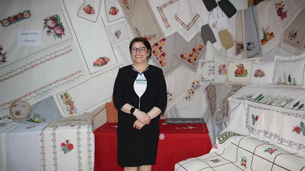 Vali Yardımcısı Dilara Şenoğlu, Vali Cengiz Ünsal'ın eşi Yasemin Ünsal ve davetliler, kursiyerlerin yıl boyunca hazırladıkları ürünlerin yer aldığı stantları gezdi.