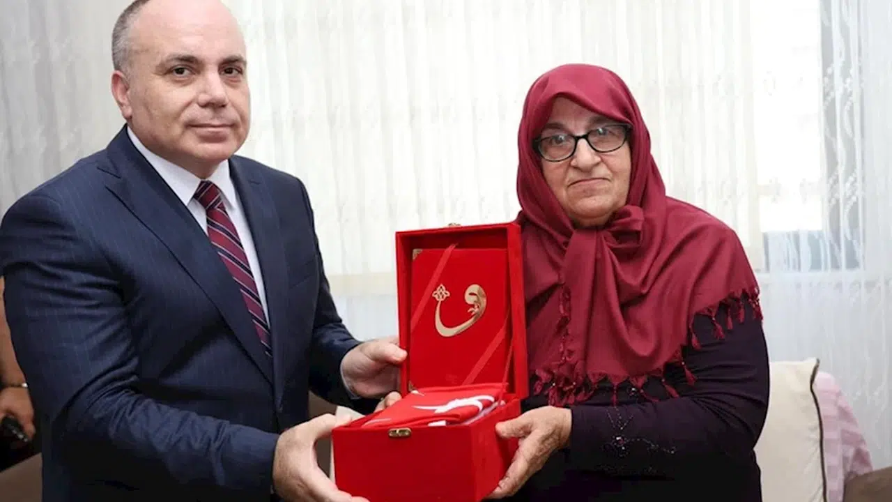 Kur'an-ı Kerim okunarak dua edilen ziyarette Vali Ünsal, şehidin annesi Sulbiye Emiral'a Türk bayrağı takdim etti.