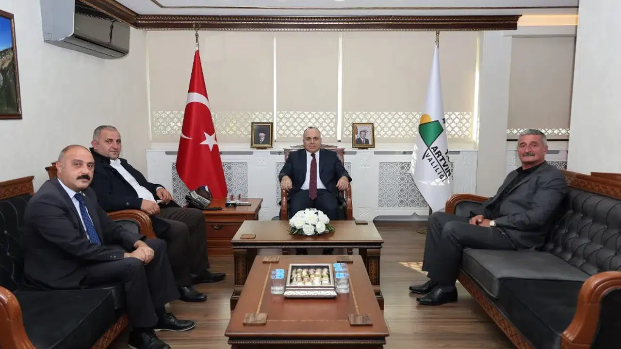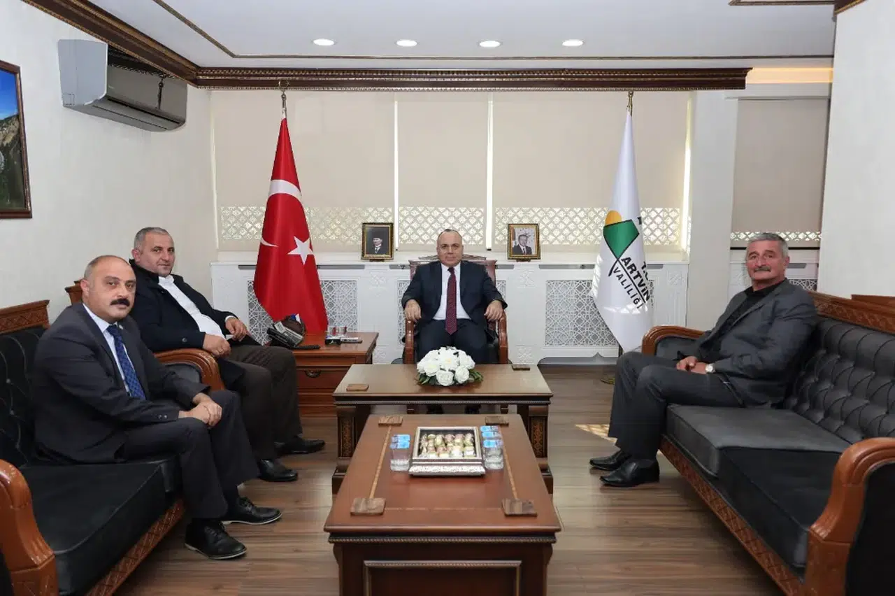 Artvin Esnaf ve Sanatkarlar Odası Başkanı Şeref Öngüner, Murgul Esnaf ve Sanatkarlar Odası Başkanı Hüseyin Yeğin ve Başkan Yardımcısı Ahmet Ender, Artvin Valisi Cengiz Ünsal'ı makamında ziyaret etti.