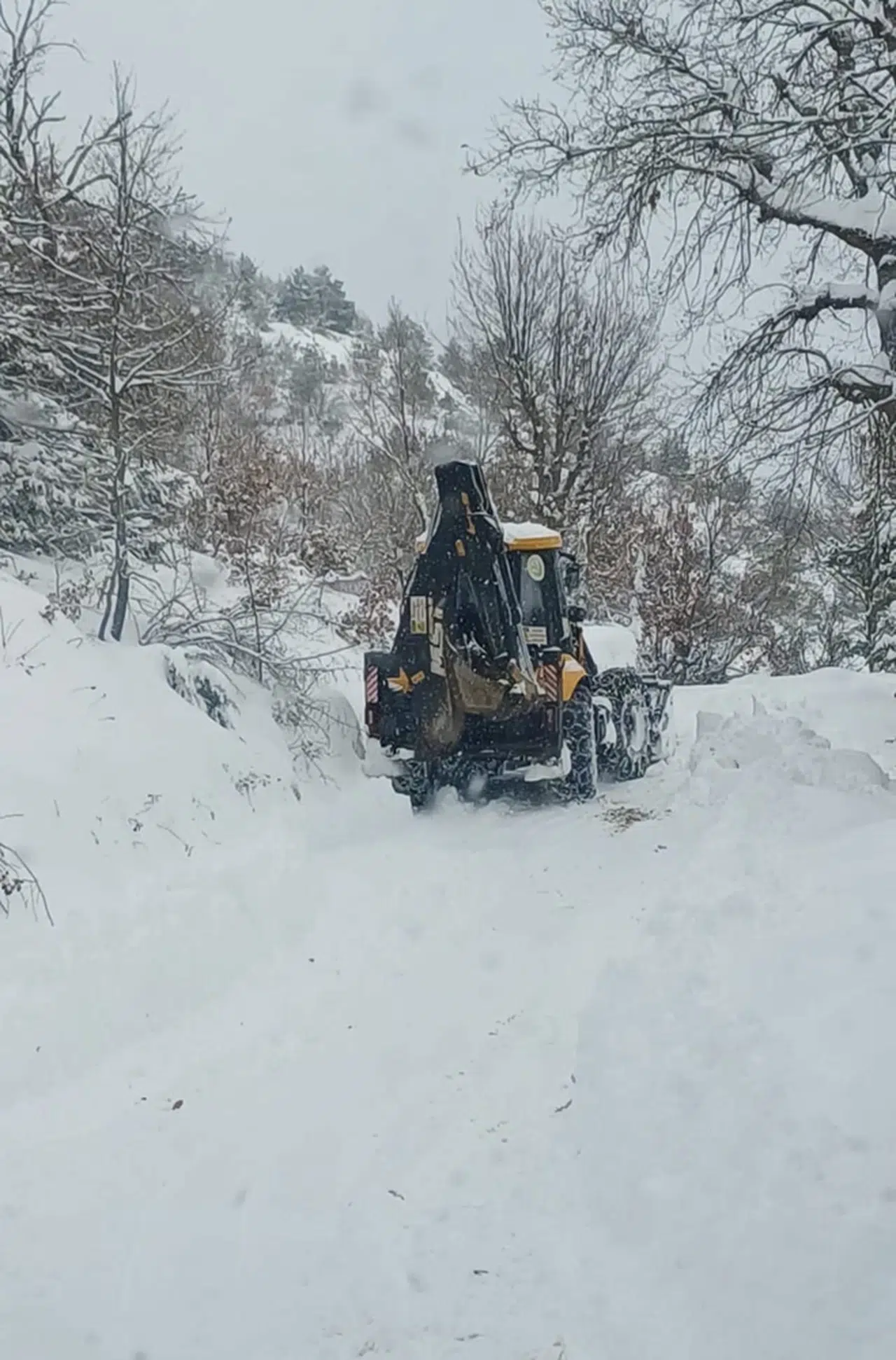 İl Özel İdaresinin 32 ekibi, iş makineleri yardımıyla yolların açılması amacıyla karla mücadele gerçekleştiriyor.