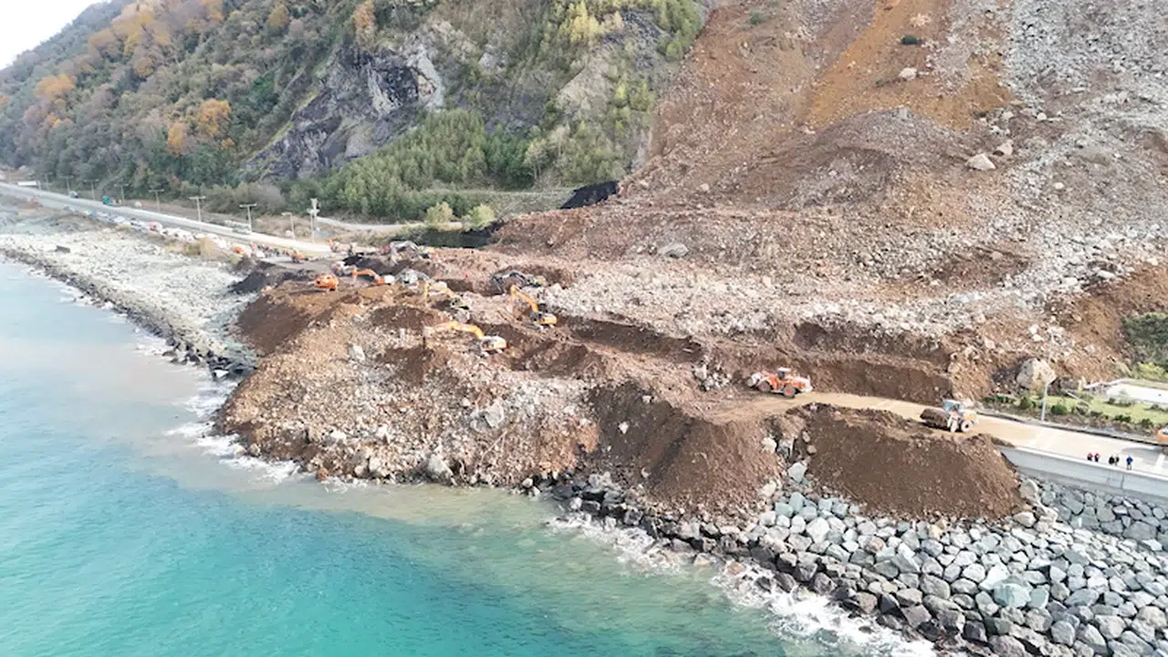SAHİL YOLUNDA HEYELAN TEMİZLİĞİ DRONLA GÖRÜNTÜLENDİ