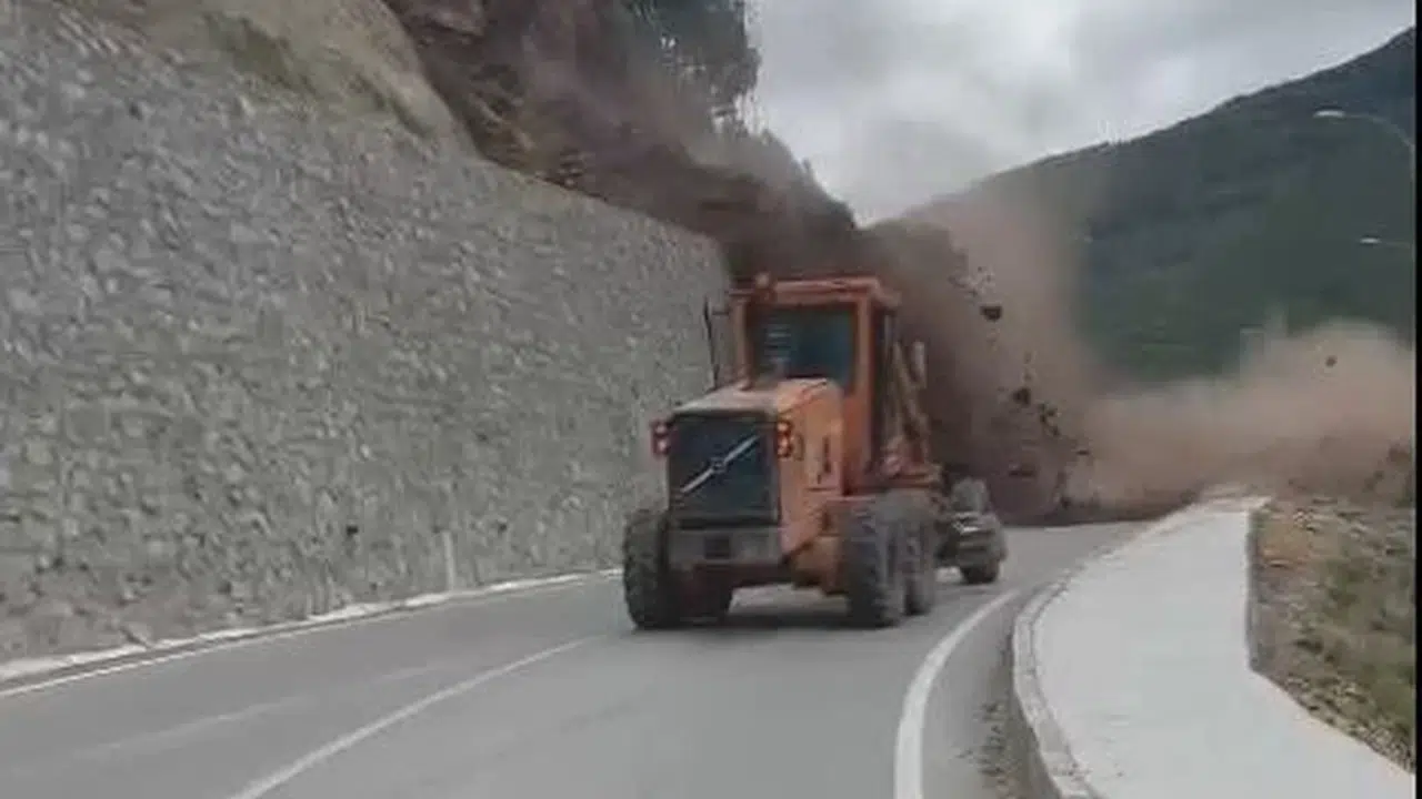 Nurbay USTA/ARTVİN, (DHA)- ARTVİN’de meydana gelen heyelanda yamaçtan kopan kayalar kara yoluna düştü. Yolda çalışma yapan iş makinesi operatörünün heyelandan son anda kurtulduğu anlar, cep telefonuyla görüntülendi.
