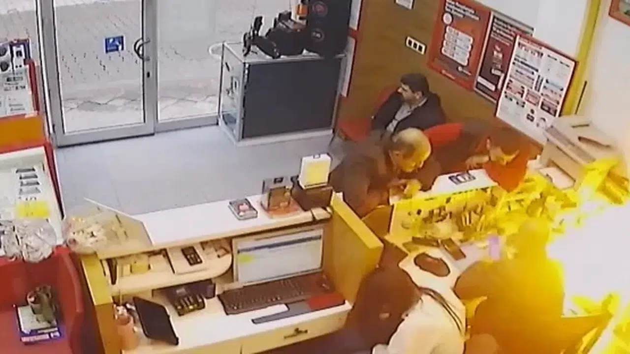 Olay, öğlede sonra Sinan Arslan’a ait telefon tamir atölyesinde meydana geldi. Tamir için masanın üzerinde bekleyen cep telefonunun bataryası bir anda parladı. Alev topuna dönen telefon masanın arkasına düşerken, tamirci ve atölyedekiler kendileri korumak için hızla uzaklaştı. Alev alan telefon söndürülürken, yaşananlar iş yerinin güvenlik kamerasına yansıdı. (DHA)