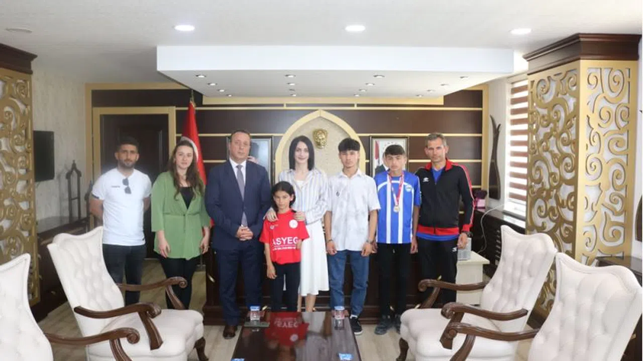 Asarcık Kaymakamı Fatma Gül Nayman, makamında genç sporcu ve antrenörleriyle okul idarecilerini ağırlayarak, başarılarından dolayı kutladı.