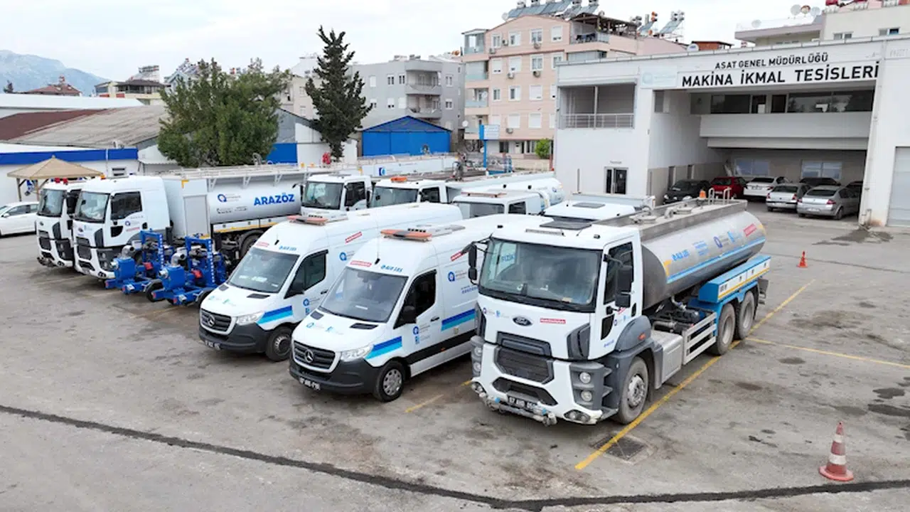 Antalya Büyükşehir Belediyesi ASAT Genel Müdürlüğü, Antalya'nın her noktasında verdiği hizmet ağı vatandaşın su ihtiyacını karşılıyor. ASAT ekipleri, hizmet kalitesini arttırmak adına yaptığı çalışmalar ile araç ve iş makinesi kapasitesini artırıyor. ASAT 2019 yılından itibaren makine parkına 152 adet araç ve iş makinesi ekledi. ASAT'ın toplam araç ve iş makinesi sayısı 1124'e çıktı. 1124 araç içerisinde; arazöz, vidanjör, kombine kanal açma ve temizleme aracı, paletli ekskavatör, asfalt serici, asfalt silindiri, fiziki kaçak arama aracı, kanal görüntüleme aracı, traktör, sayaç okuma motosikletleri ve forklift gibi birçok farklı çeşitte iş makinesi bulunuyor.