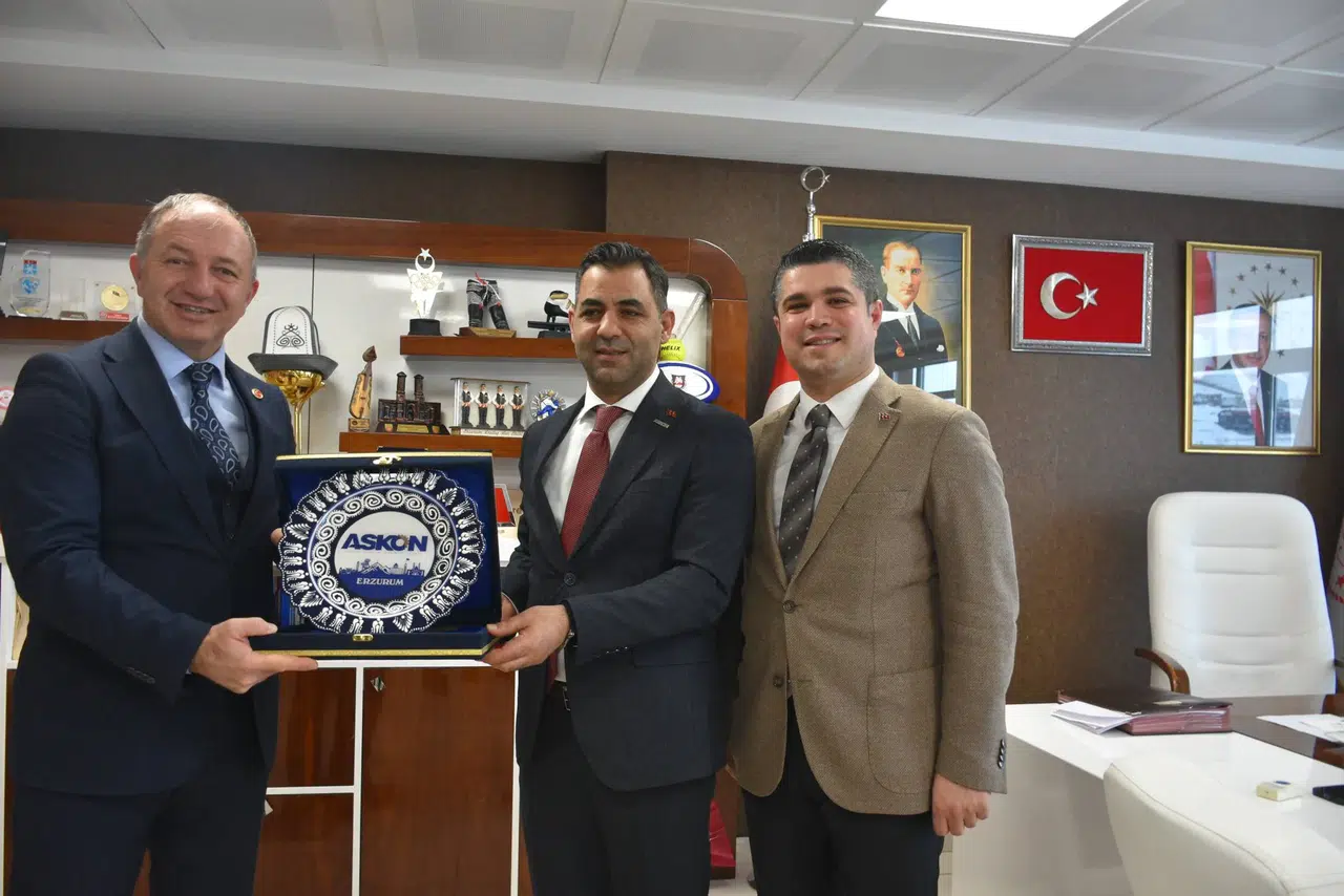 Samimi bir ortamda gerçekleşen görüşmede, kentte yürütülen faaliyetler ve iş birliği imkânları ele alındı. Ziyaretin sonunda ASKON Erzurum İl Başkanlığı adına İl Başkanı Yavuz Selim Turan tarafından İl Müdürü Levent Çakmur’a plaket takdim edildi.