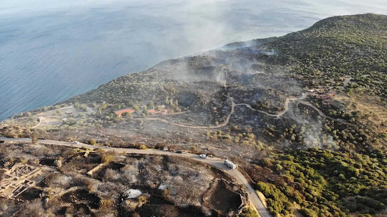 Nazif Cemhan ŞEN- İpek YAVAŞ/ÇANAKKALE, (DHA)- ÇANAKKALE’nin Ayvacık ilçesinde makilik alanda çıkıp Assos Ören Yeri ve Athena Tapınağı'nı da etkileyen yangında 43 futbol sahası büyüklüğüne, 31 hektar alanın zarar gördüğü bildirildi.