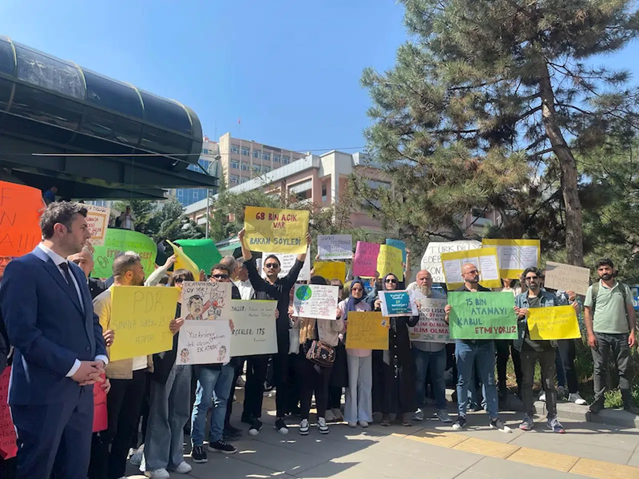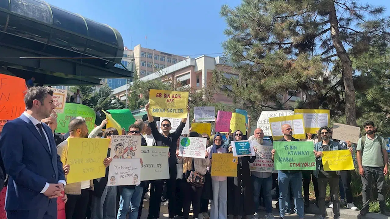 Kübra SONKAYA-Ali Oğulcan ARSLAN/ANKARA, (DHA)- ATAMA bekleyen öğretmen adayları, Milli Eğitim Bakanlığı önünde toplanarak basın açıklaması yaptı.