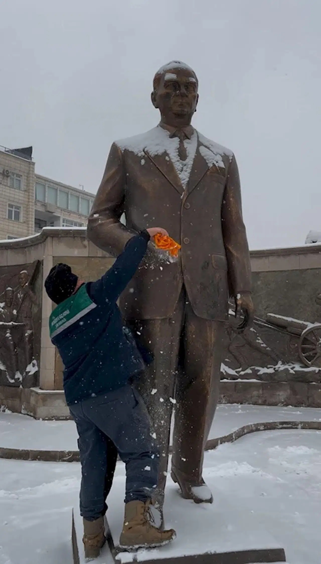 Samed Aydın SUN/KAYSERİ, (DHA)- KAYSERİ'de etkili olan kar yağışı ile kent beyaza büründü. Belediye ekipleri, cadde ve sokaklarda kar temizliği yaptı. Bir işçi de Atatürk Anıtı'ndaki karları temizledi.