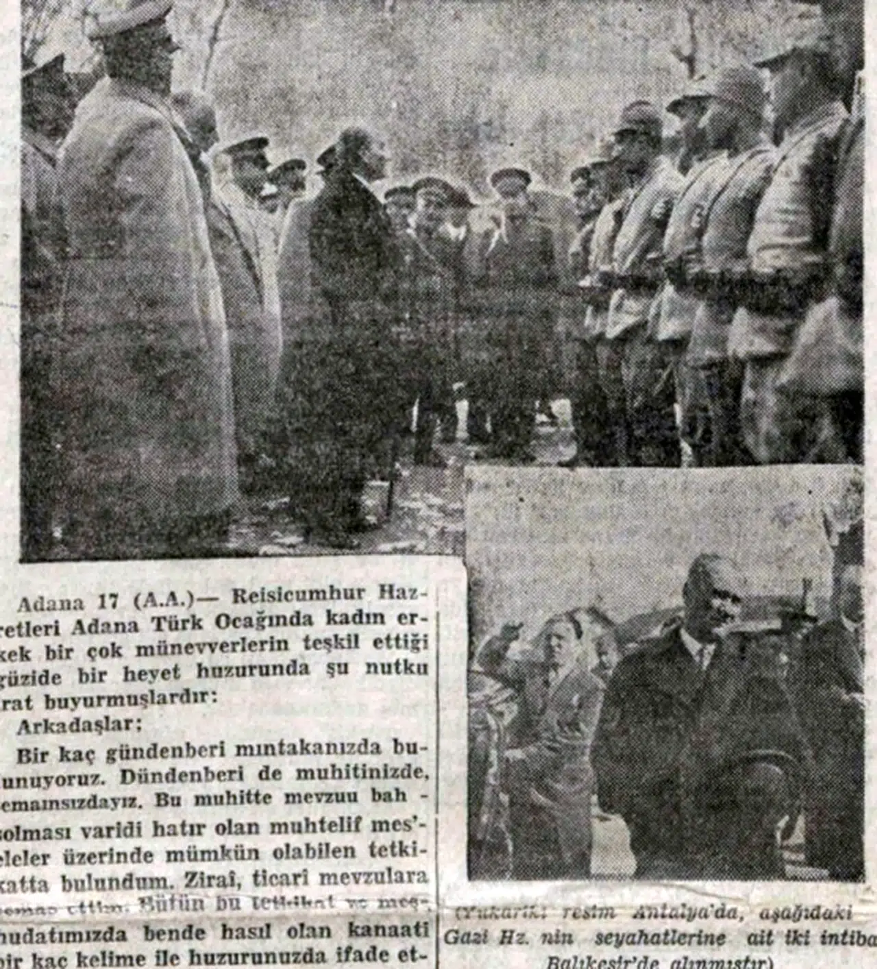 Atatürk, Antalya'ya ilk ziyaretini 6 Mart 1930'da yaptı. Atatürk'ün Antalya'yı ikinci ziyareti 26 Ocak 1931 tarihinde başladığı yurt gezisinin bir parçası dahilinde geçekleşti. Seyahati, 1929 dünya buhranı ve Serbest Cumhuriyet Fırkası'nın kapatılması sonuçlarını uzman bir heyetle yerinde tetkik etmek ve yapılması gerekenleri tespit edilmek üzere yapılmıştı. Bu amaçla 8 Şubat 1931'de Ege Vapuru ile İzmir'den Antalya'ya yola çıktı. Ege Vapuru 10 Şubat 1931'de sabah Antalya'ya geldi. Öğleden sonra deniz motoru ile iskeleye çıkan Atatürk, buradan alay karargahına giderek askeri birlikleri teftiş etti. Alaydan hükümet konağına geçerek validen mahalli işler hakkında bilgi aldı. Daha sonra, Belediye ve Cumhuriyet Halk Fırkası'nı ziyaret ederek, memleket işleri üzerinde uzun uzun görüştü. Validen mahalli işler hakkında bilgi alan Atatürk, bu sohbet sırasında esaslı bir zirai kredi ve satış kooperatifinin teşkilinin önemini ve örgütlenmesi gerektiğini belirtti. Aynı gün akşamüzeri vapura dönüp, Silifke'ye doğru gitmek için Ege Vapuru ile hareket etti. Ata'nın Antalya'ya üçüncü gelişi ise 18 Şubat 1935 tarihinde. (DHA)